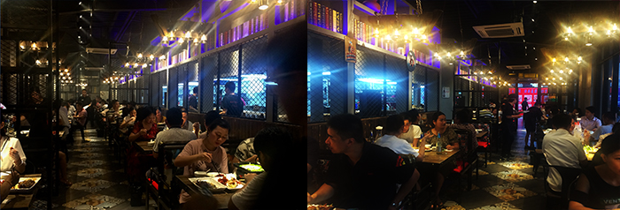 工业风的装修环境,不太规则的椅子、嘈杂的环境,服务员在大声吆喝,给顾客营造一种在夜市、大排档的感觉。粗犷的氛围,让顾客感觉即使穿着西装,也可以把领带塞在口袋里,喝酒、聊天、吹牛,营造一种很放松的状态。