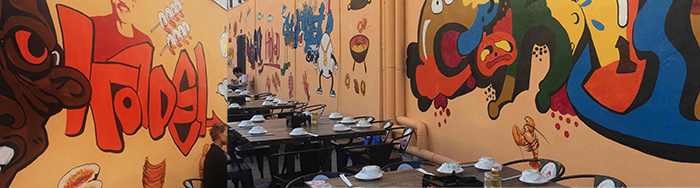 此次,品深设计团队有幸为三毛烧烤深圳首家店担纲空间设计重任,通过对目前市场几类烧烤品牌的研究和分析,我们发现,烧烤餐厅打造的是夜市、大排档的场景,是给顾客一个放松的场景。